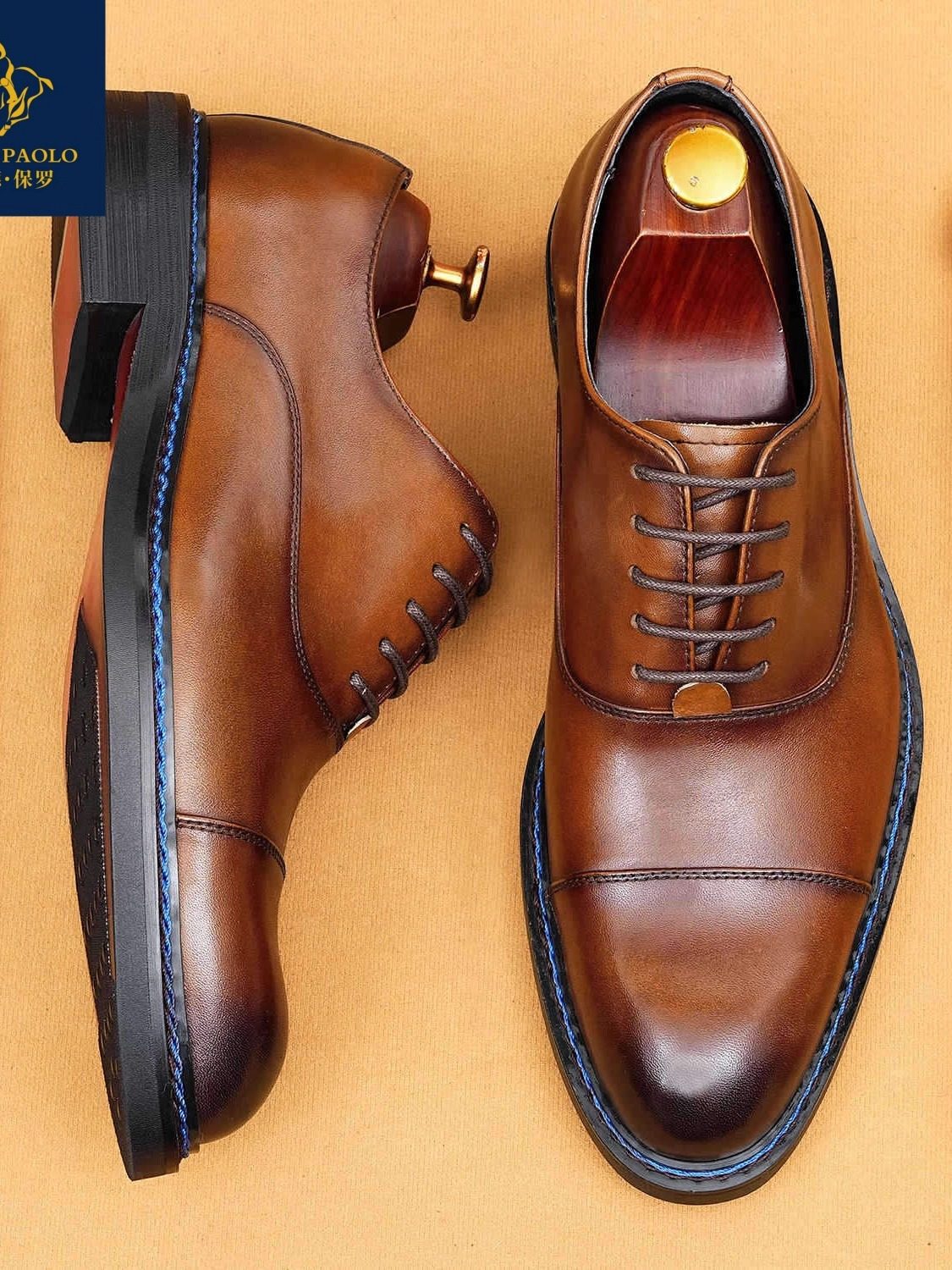 Oland Paul Genuine Leather Handmade Leather Shoes for Men, Business Formal Wear, Three-Joint Pointed Toe, Norwegian Stitched Oxford Shoes for Men