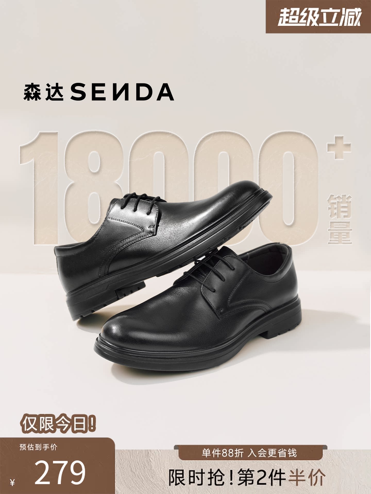 Aokang Men's Shoes, New Autumn Derby Shoes, Business Formal Lace-Up Wedding Groom Leather Shoes, Shipped from the Store