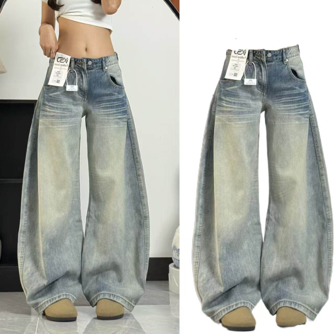 American Retro Scimitar Jeans for Women, Autumn 2025 New Low-Waist Loose Straight Wide-Leg Floor-Length Sickle Pants