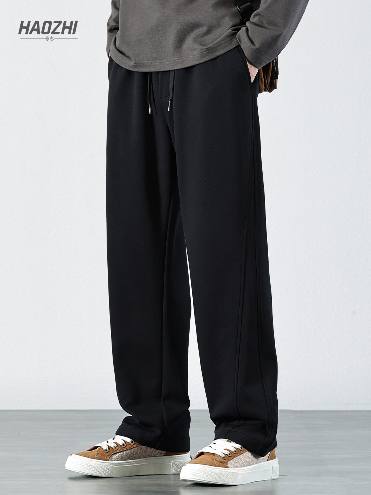 Haozhi Drawstring Elastic Waist Sweatpants for Men 2025 Autumn and Winter Fleece-Lined Casual Pants Loose Straight-Leg Trousers
