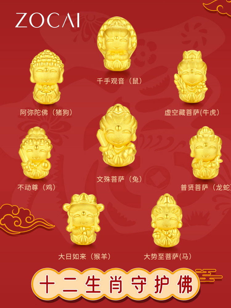 Zokai Twelve Zodiac Eight Guardian Buddhas Pure Gold Beaded Bracelet Fortune Bead Bracelet Birth Year Buddha Gift