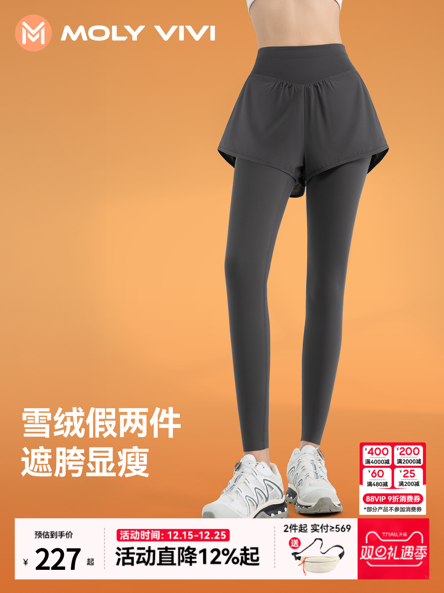 Magic Weiwei Fake Two-Piece Shark Pants for Women, New Autumn and Winter Velvet Warm Hip-Covering Slimming Outerwear Yoga Leggings