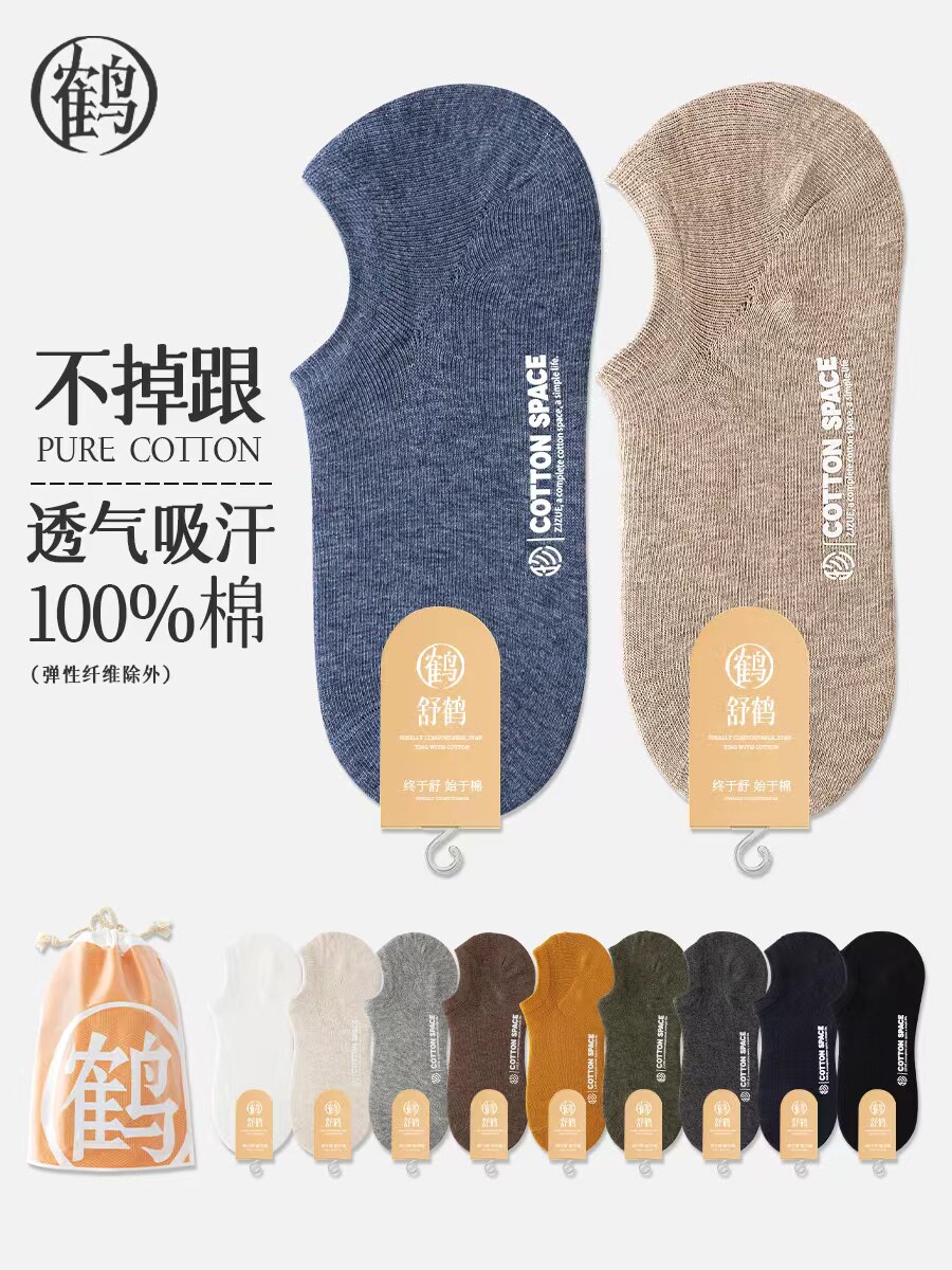 Men's No-Show Socks for Spring and Summer, 100% Cotton, Odor-Resistant, Non-Slip, Low-Cut, All-Cotton, Invisible Short Socks