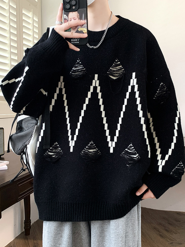Sweater for Boys in Autumn and Winter, Youth Casual Trendy Brand Loose Thick Knitwear for Middle and High School Students