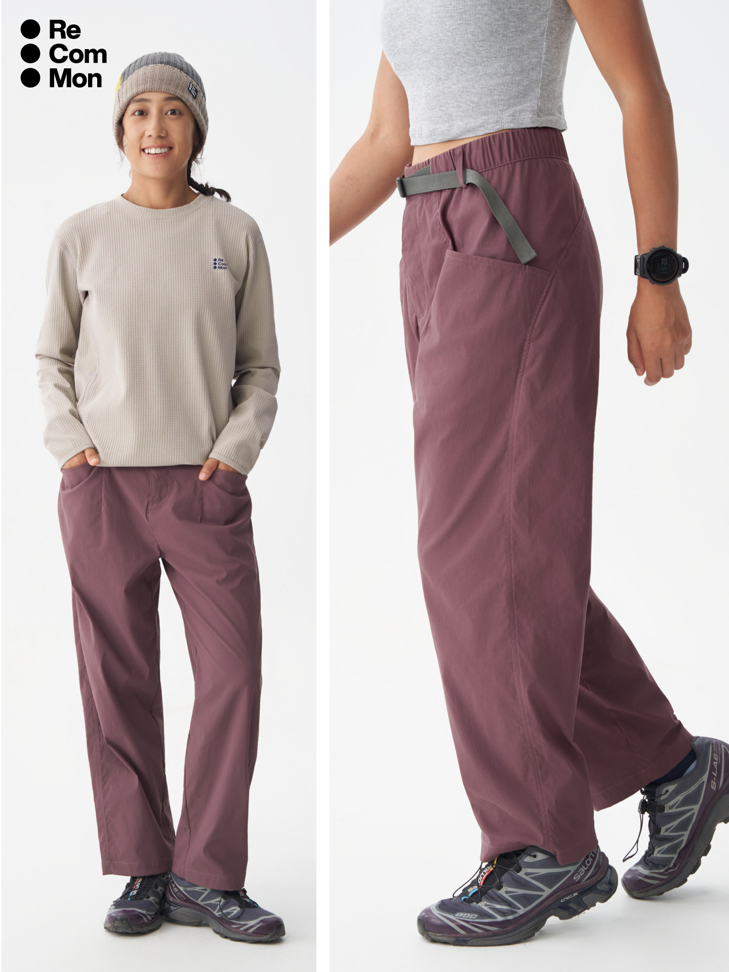 Recommon Outdoor Casual Pants for Women, Cotton-Like, Comfortable, Water-Repellent, Breathable, Quick-Drying, Hiking and Trekking Cropped Wide-Leg Pants