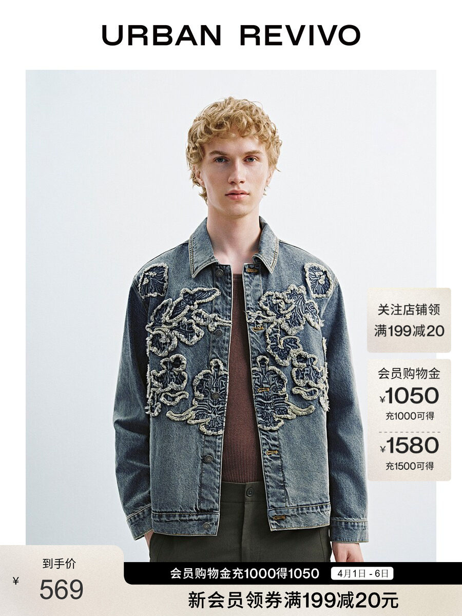 Ur2026 Spring New Men's Retro Casual Three-Dimensional Flower Pattern Denim Jacket Umf850068