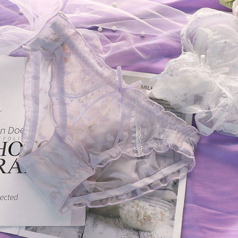 Summer Girl's Lace Underwear Heart-Shaped Sexy Breathable Mesh Cute Bow Thin Antibacterial Crotch Briefs for Women