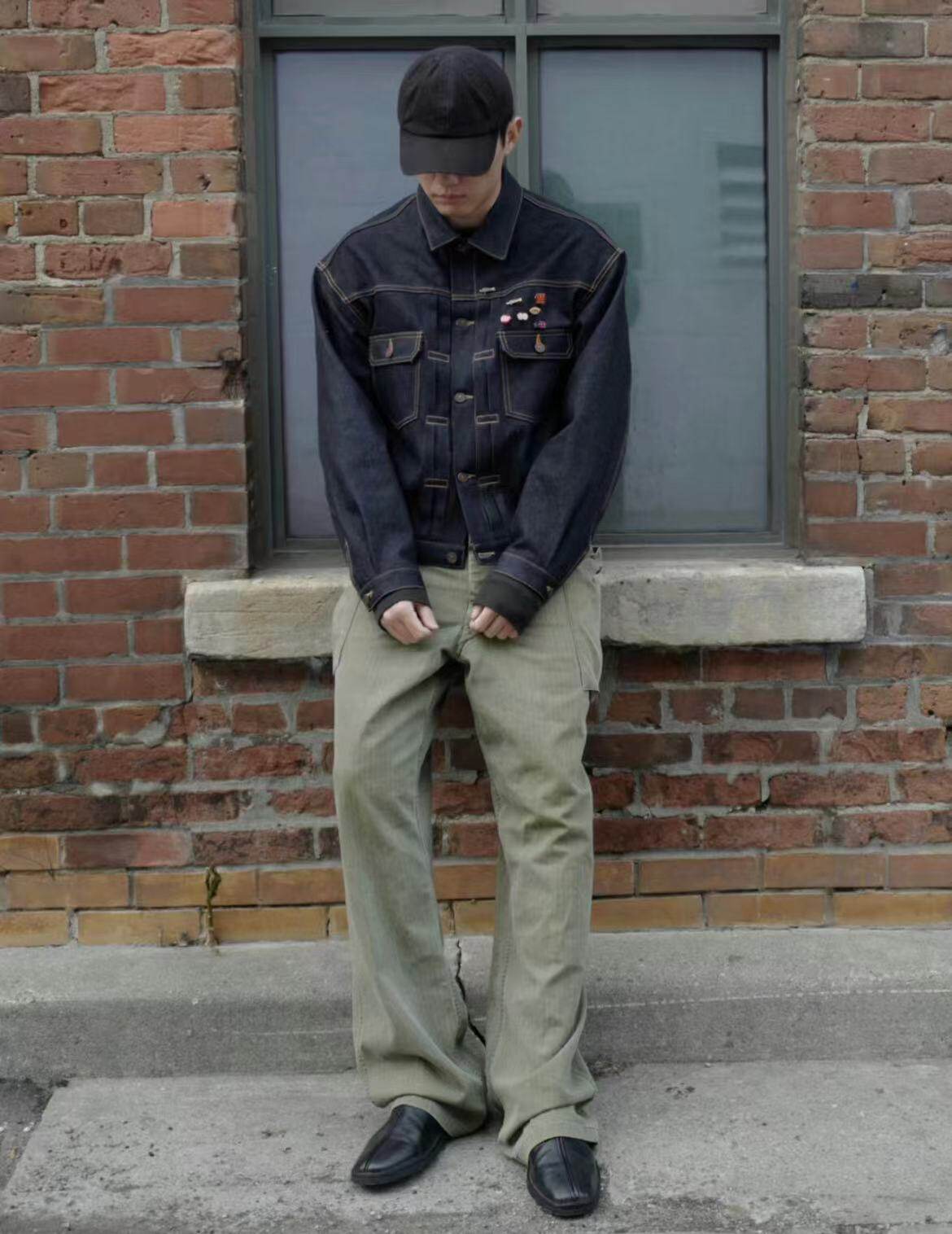 Eodup 24Ss Heavy-Duty Selvedge Knife-Cut Silhouette Vertical Stripe Washed Vintage Blue Loose Denim Jacket