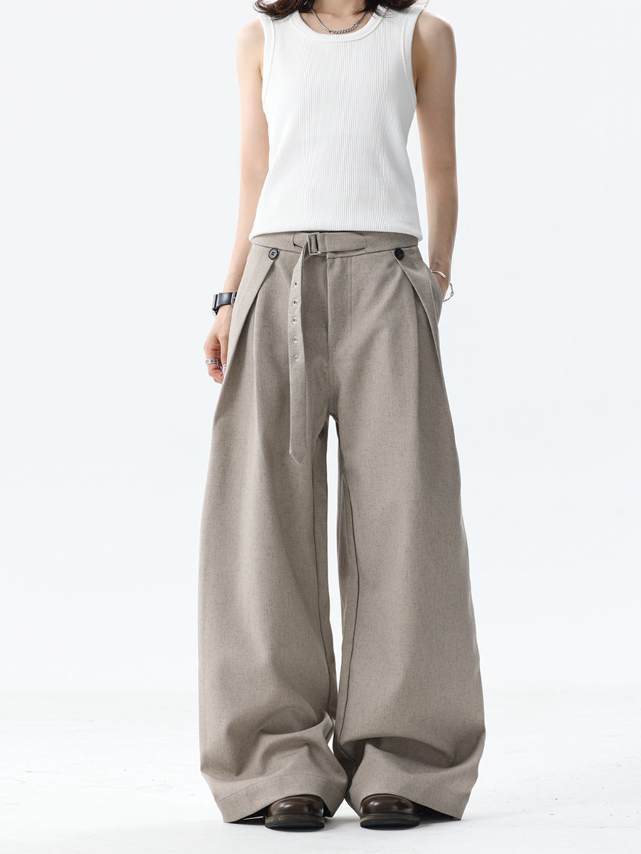 Bflc Old Money Style Linen Texture Pleated Lightweight Breathable Summer A-Line Wide-Leg Casual Trousers