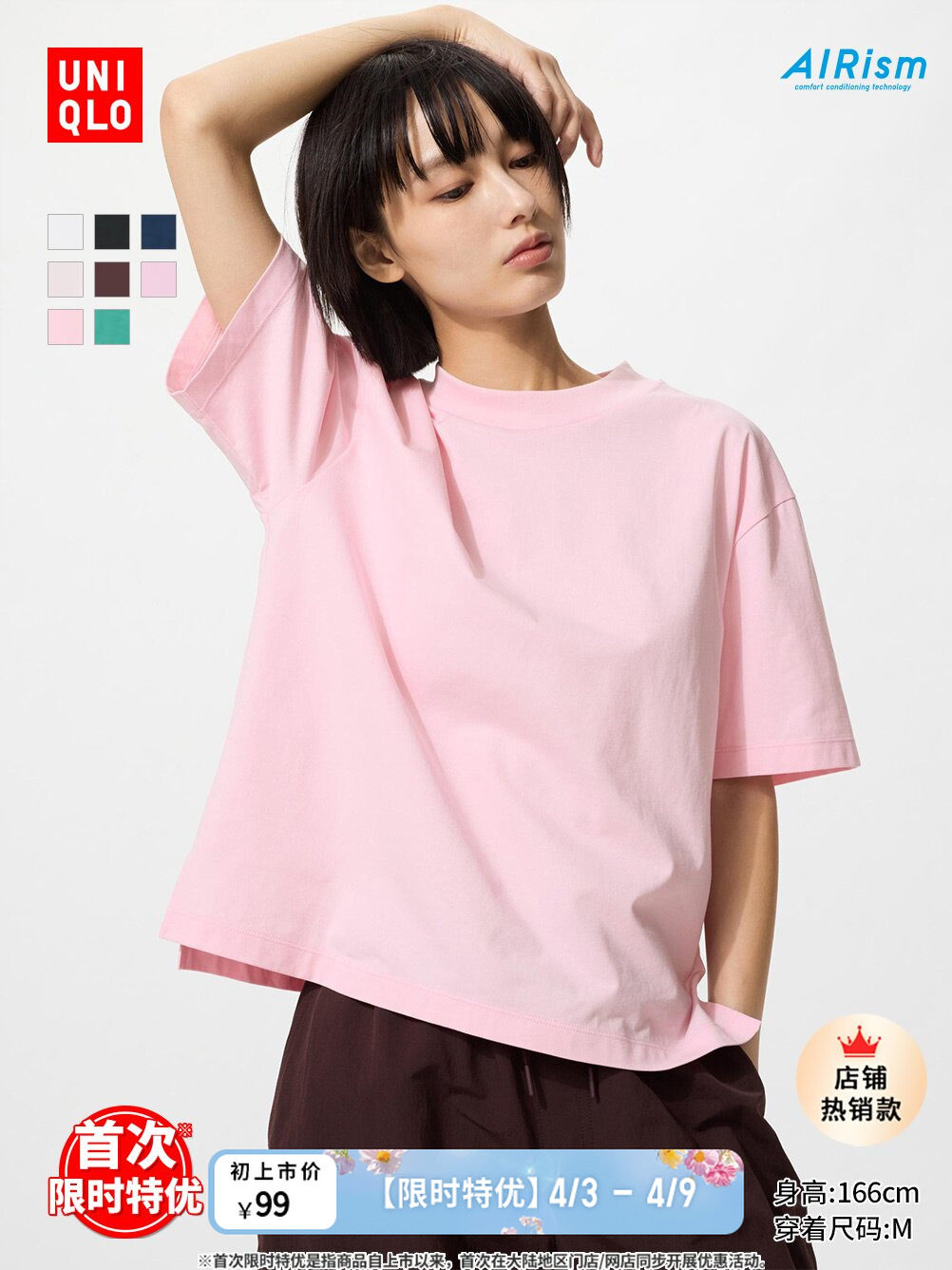 Uniqlo Women's Airism Cotton Blend T-Shirt/Short-Sleeved 26 Spring and Summer New Style 483457