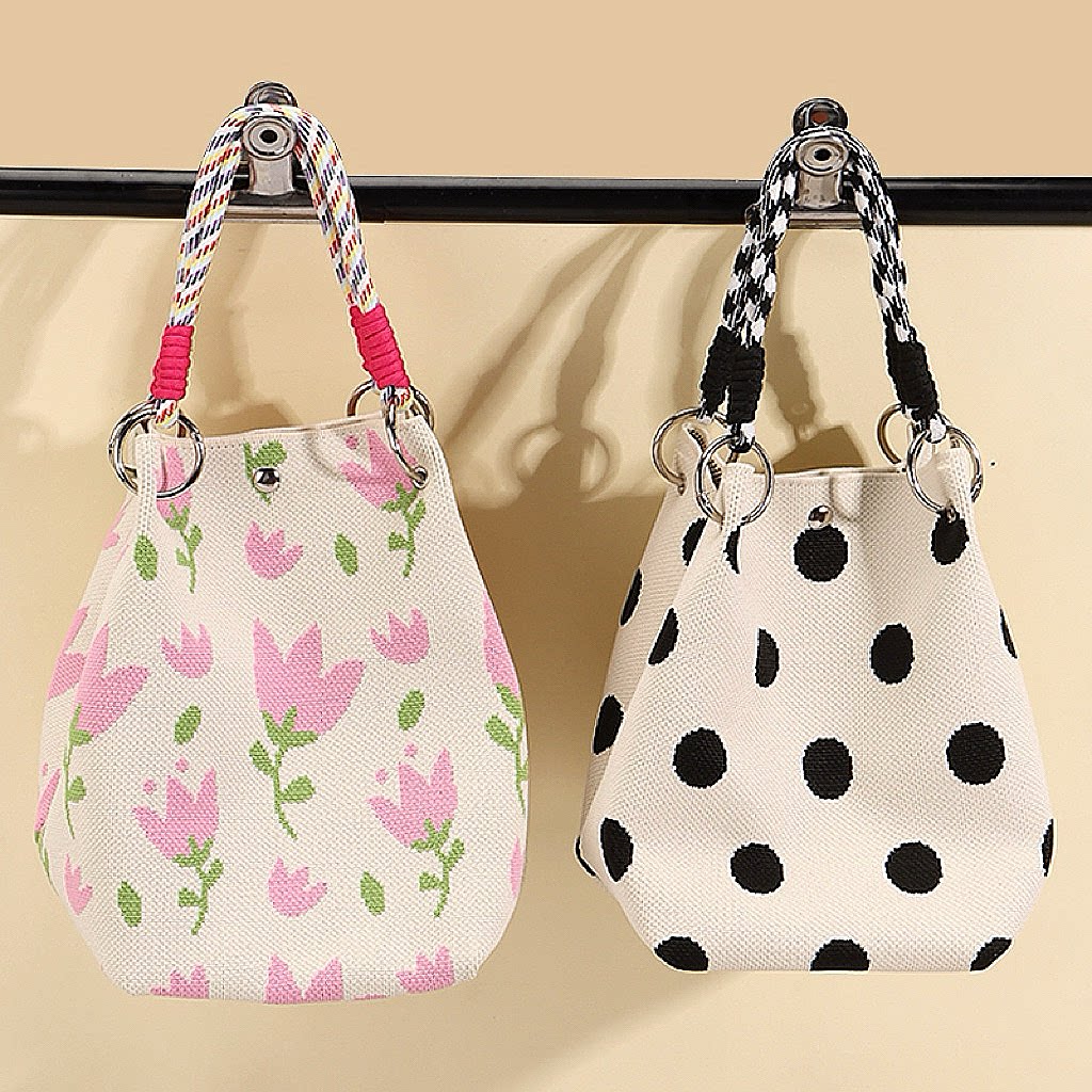 New ins Niche Cute Knitted Phone Bag Summer Travel Handbag Coin Purse Korean Style Street Style Bucket Bag