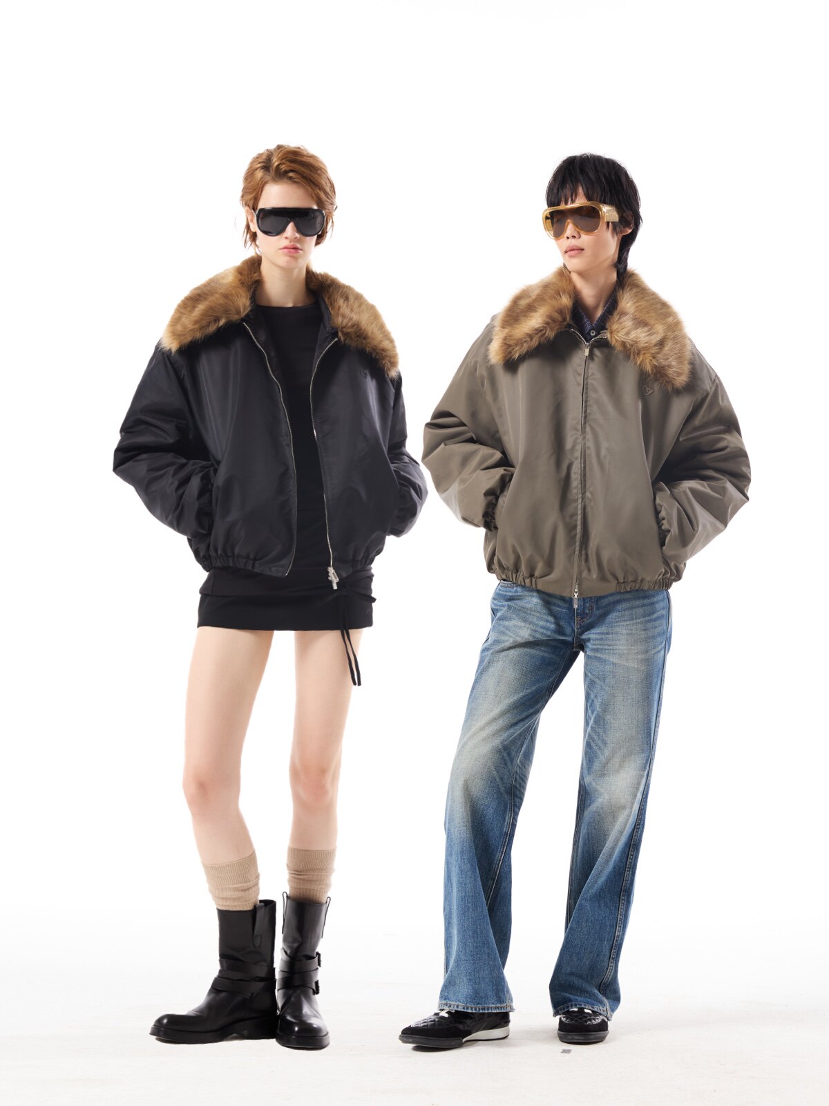 Aoanao Padded Detachable Large Fur Collar Short Jacket|Outerwear Jacket|Black/Army Green