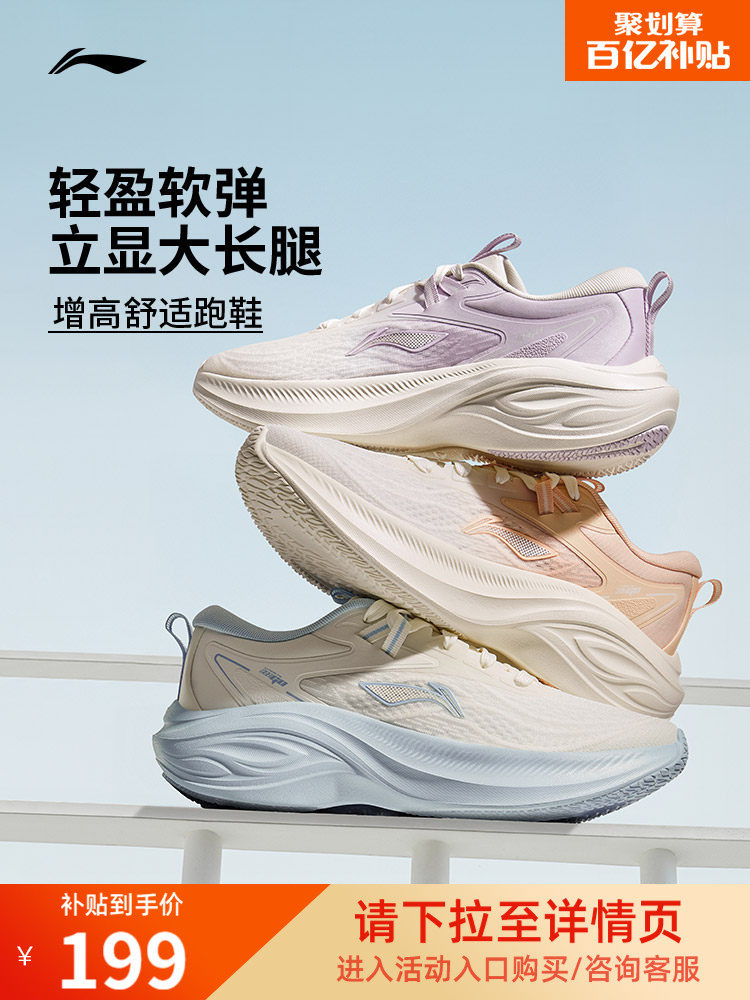 Li-Ning Women's Running Shoes, Lightweight and Breathable, New Summer Model, Thick-Soled, Height-Increasing, Shock-Absorbing, Soft-Soled, Jump Rope, Casual Sports Shoes