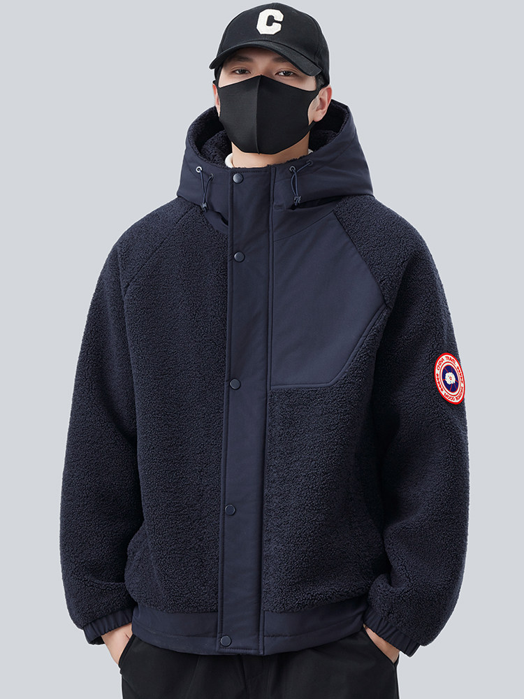 Lamb Wool Jacket for Men, Autumn and Winter 2025 New Style, Fleece Thickened Cotton Clothing, Winter Hooded Padded Jacket