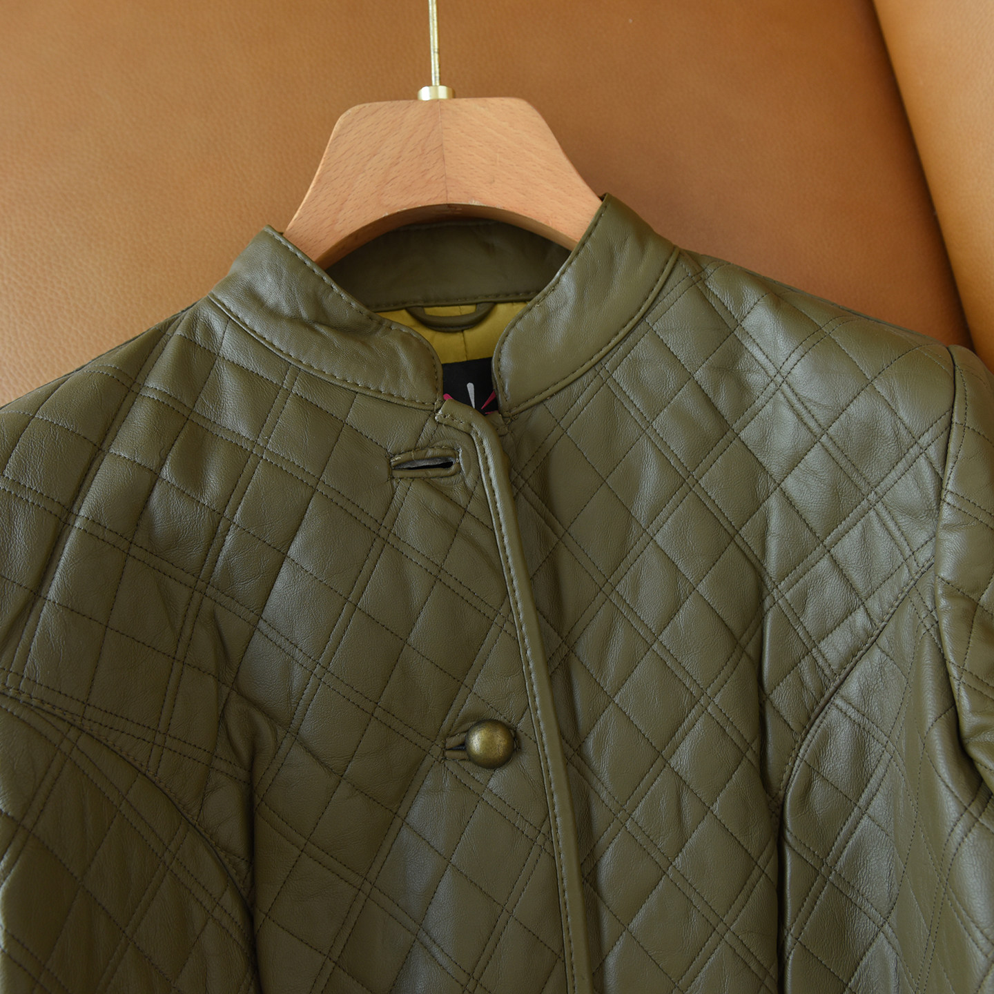 Classic and Elegant Stand-Collar Genuine Leather Jacket, Large Size, Lightweight, Warm, Quilted Diamond-Patterned Sheepskin Jacket