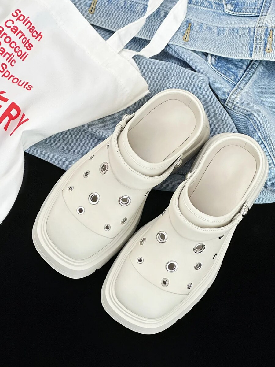 Sheepskin Version ~ Retro Metal Stud Thick-Soled Clogs for Outdoor Wear, Casual Height-Increasing Slip-On Closed-Toe Sandals for Women