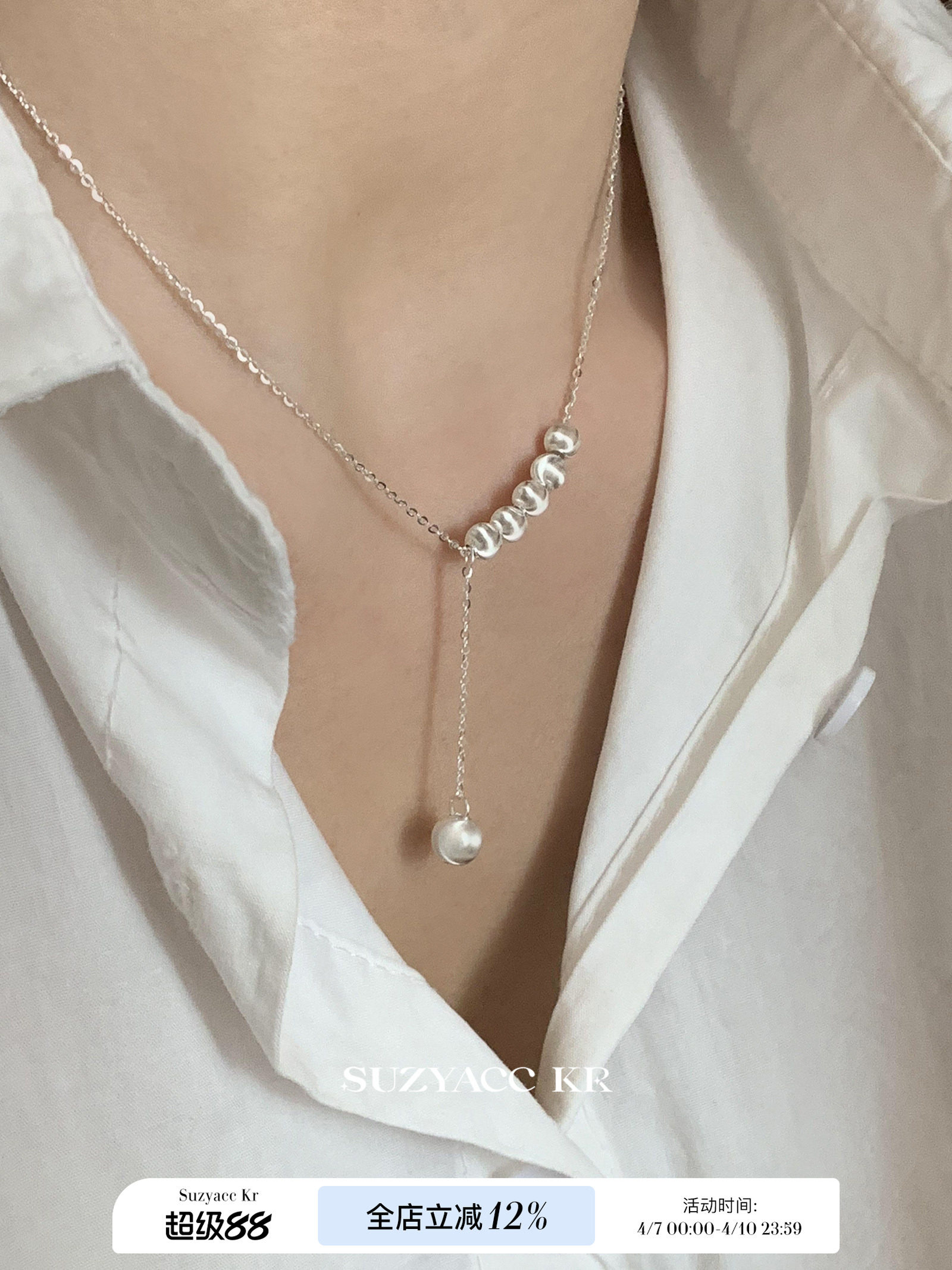 Suzyacc Kr Pure Silver Cat's Eye Small Round Ball Pendant Necklace for Women 2026 New Style Simple Light Luxury Clavicle Chain