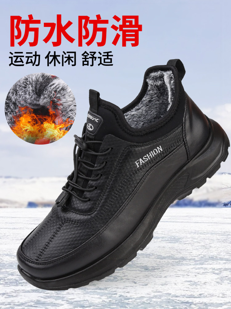 Old Beijing Cotton Shoes for Men, Winter Fleece-Lined, Warm, Soft-Soled, Non-Slip, Waterproof Cloth Shoes for Middle-Aged and Elderly Dads, Suitable for Walking