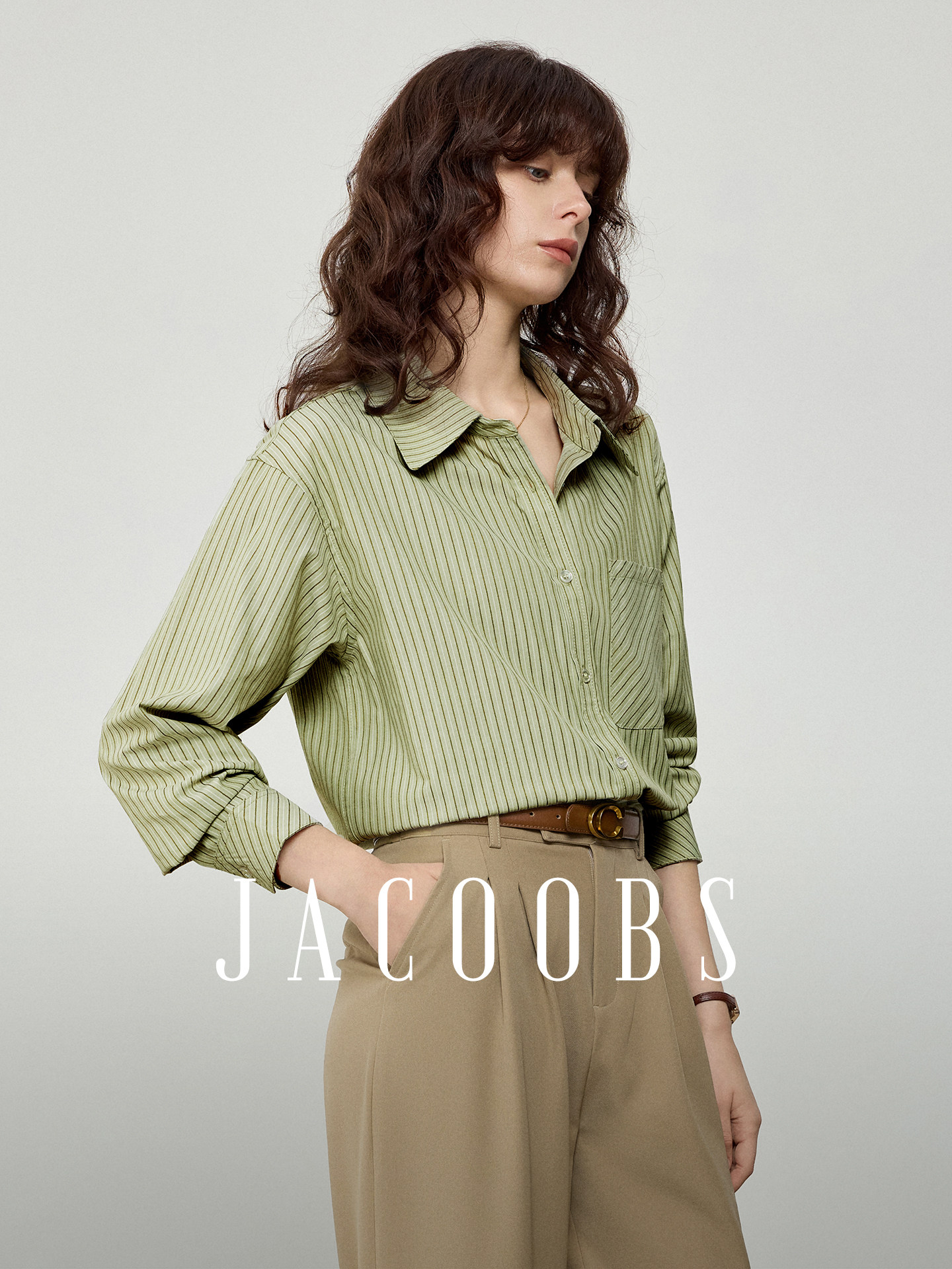 Yakejia Classic Timeless 2.0 Green Striped Shirt for Women, Spring and Autumn Professional Commuting Layered Long-Sleeve Shirt