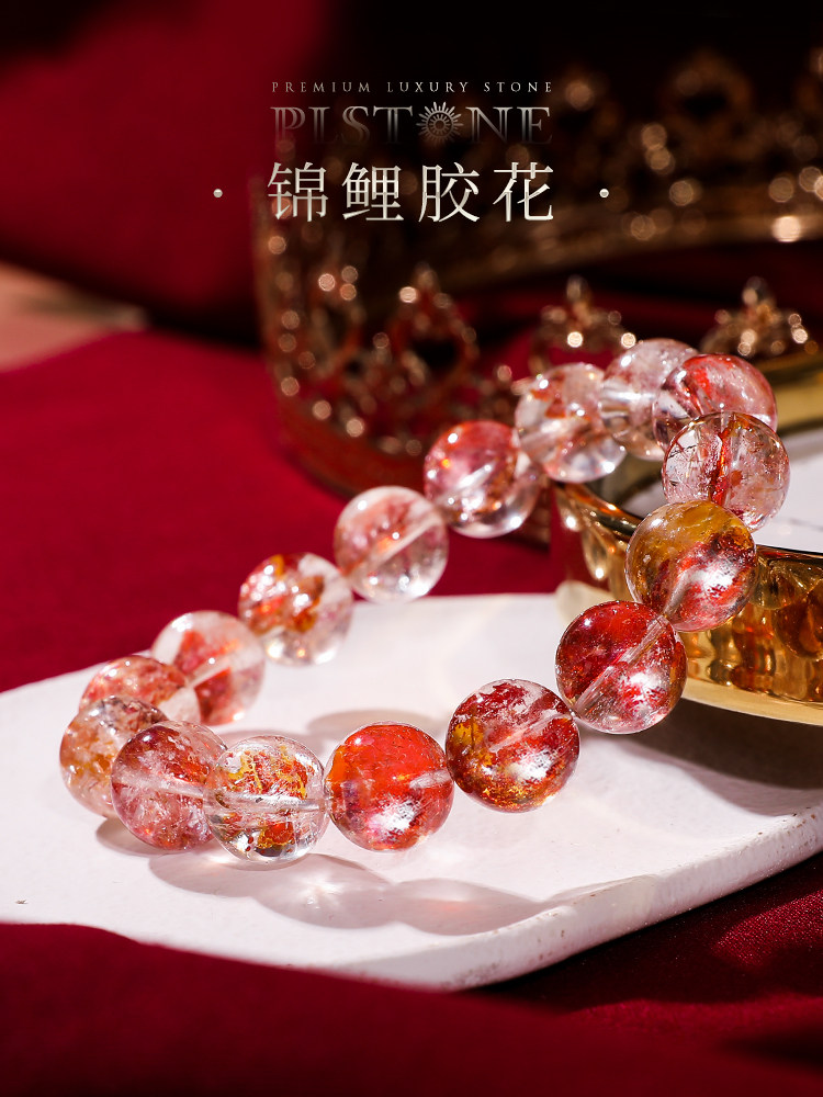 Plstone Natural Crystal 7A+ Collectible Grade Brazilian Old Mine Koi Gel Flower Bracelet for Women