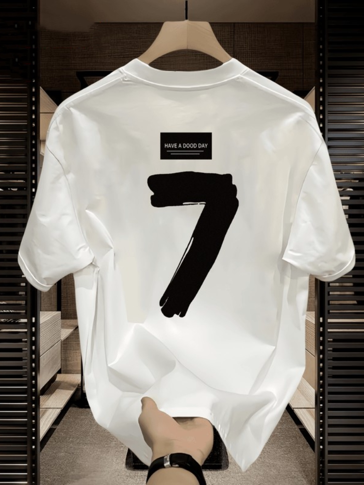 Kangshi Yishu Trendy Brand 2026 Summer White Crew Neck Short-Sleeve T-Shirt for Men, Pure Cotton Printed Couple Style Heavyweight Top