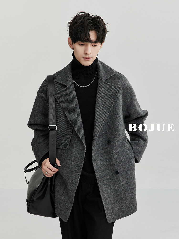 High-End Camel Wool Bjze25 Winter Double-Sided Wool Short Coat for Men, Long Sleeves, Loose Lapel Woolen Jacket