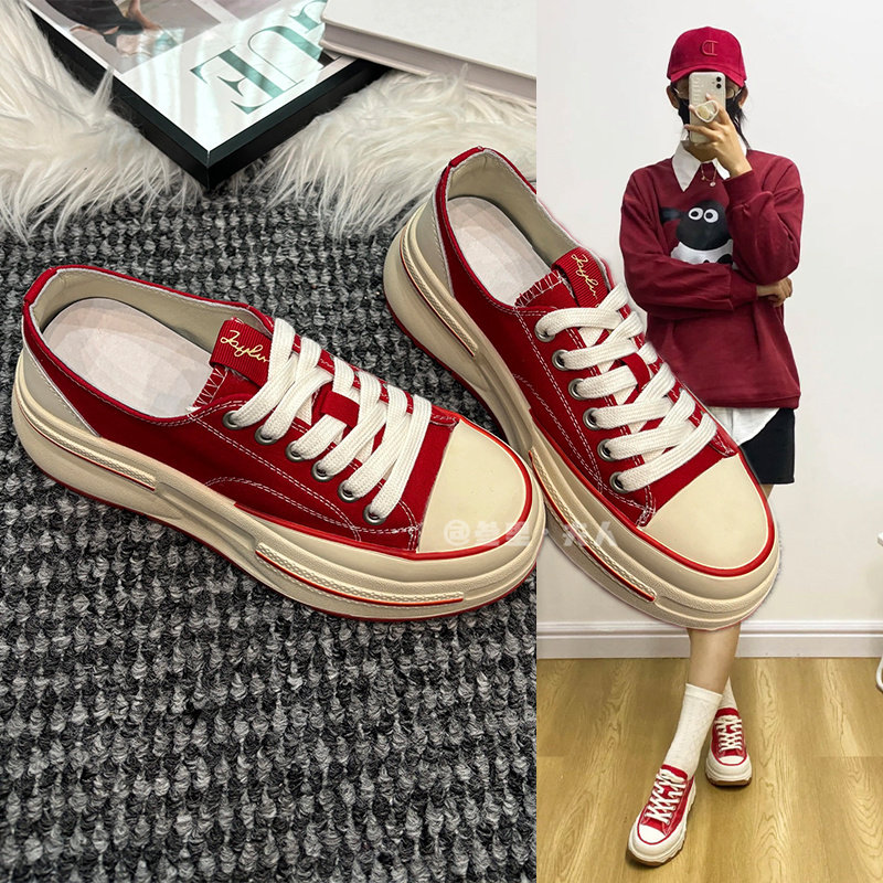 Sanli Anke La Red Thick-Soled Canvas Shoes for Women 2026 Spring and Autumn New Breathable Versatile Comfortable Height-Increasing Casual Sneakers