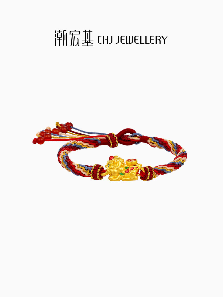 Chow Tai Fook Lucky Phoenix Tail Gold Bracelet with Pixiu, Pure Gold Bracelet, Gold-Swallowing Beast, Red String for Women X6