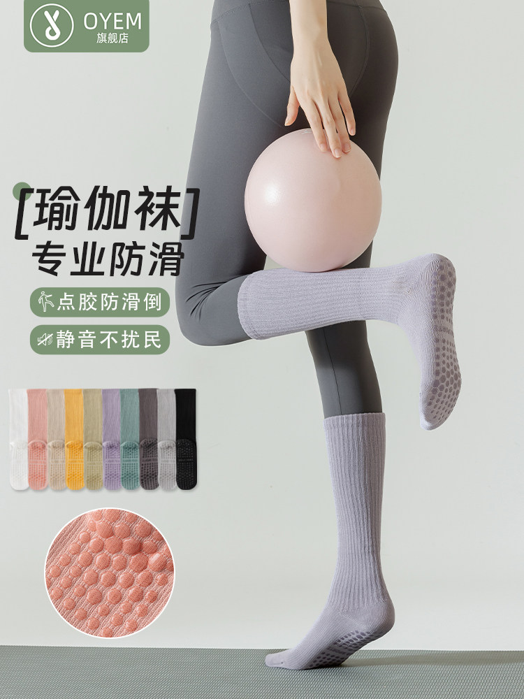 Calf Professional Sports Socks for Women, Summer Thin Non-Slip Indoor Jump Rope Floor Socks, Yoga Pilates Cotton Long Socks