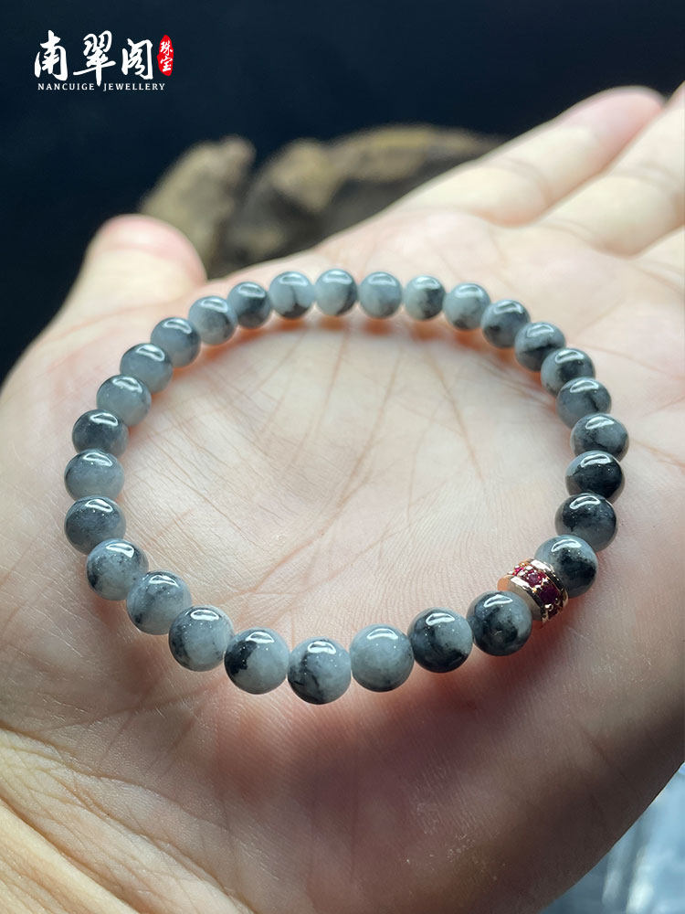 Jade Ice Black Chicken Xiao Mi Bead Chain Single Circle Bracelet Ink Style Black and White Gray a Jade Bracelet Women's Round Necklace