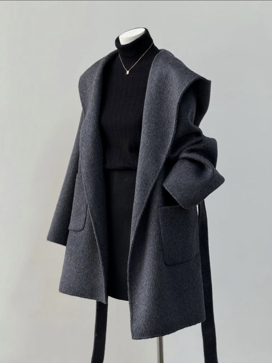 M Brand Hooded Double-Sided Cashmere Coat for Women, Short Style for Petite Figures, 2025 Autumn and Winter New Loose Korean Style Woolen Coat