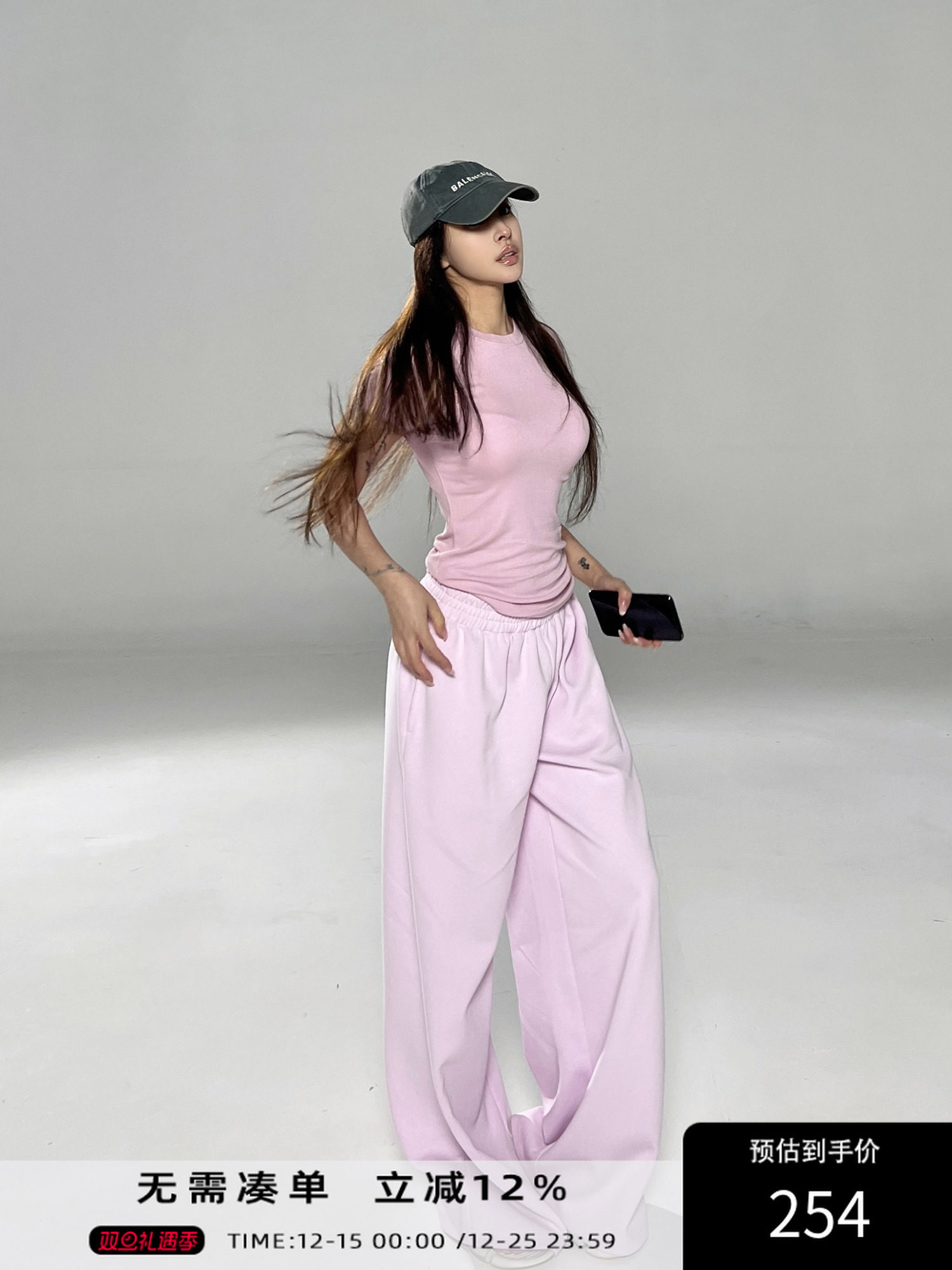 Angelapopewang Black King Pink Purple No Drawstring Sweatpants Fashionable Personality High Waist Casual Wide Leg Pants