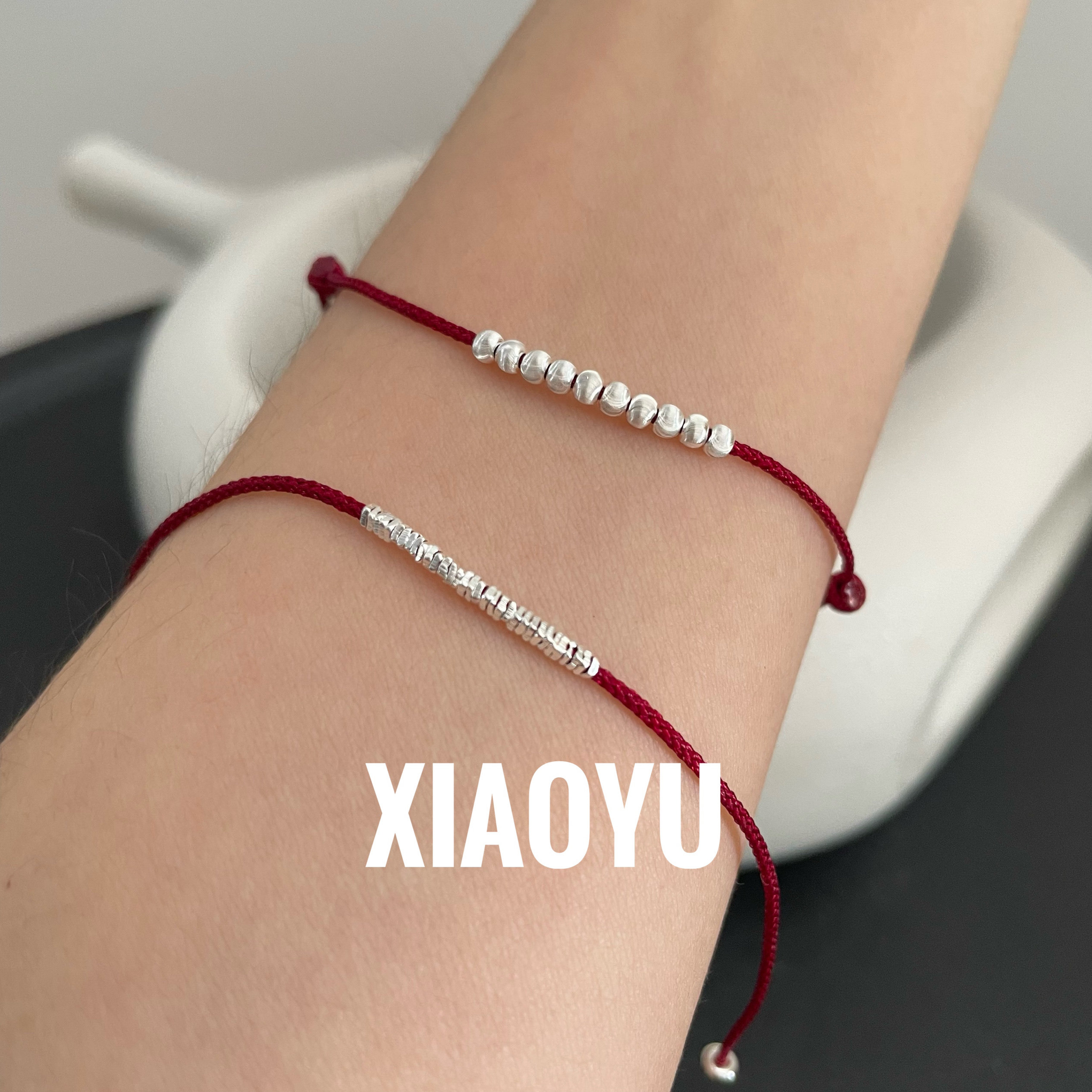 New Year's All-Over S925 Sterling Silver Hand-Woven Ultra-Fine Broken Silver Red Rope Bracelet Couple Pull-Out Adjustable Bracelet