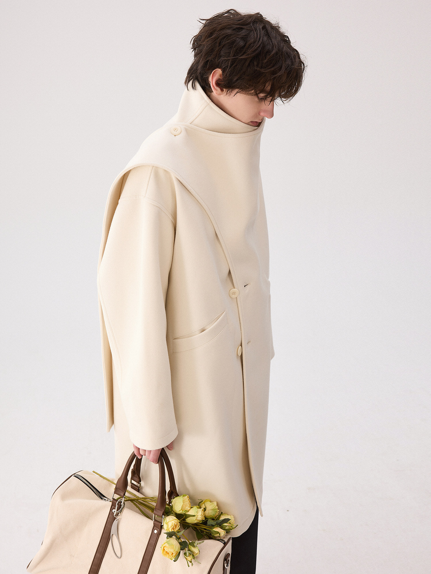 Chicerro Sicilian Men's Winter Designer One-Piece Scarf Wool Long Coat Trendy Men's Outerwear
