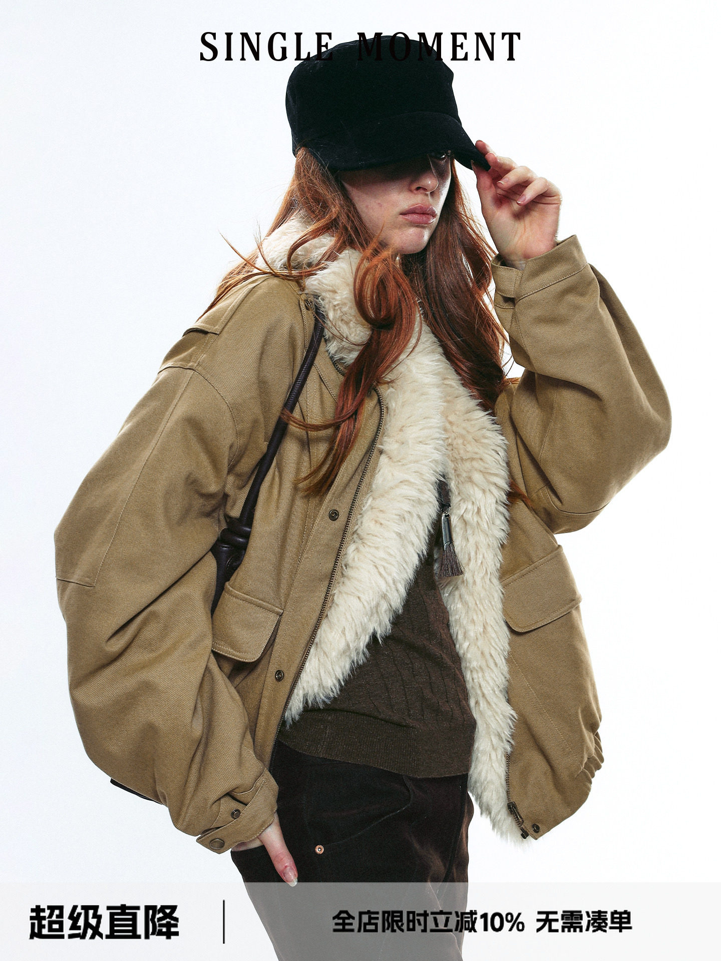 Single Moment 25Aw French Retro Fur Collar Warm Light Workwear Short Cotton Jacket for Women