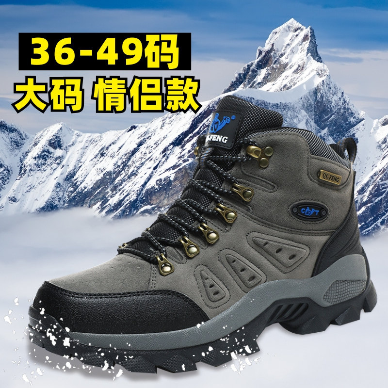 Autumn and Winter Outdoor Casual Sports Shoes Large Size 47 Leather Surface 48 Rock Climbing 49 Non-Slip Hiking and Mountaineering Shoes Men Paul Camel