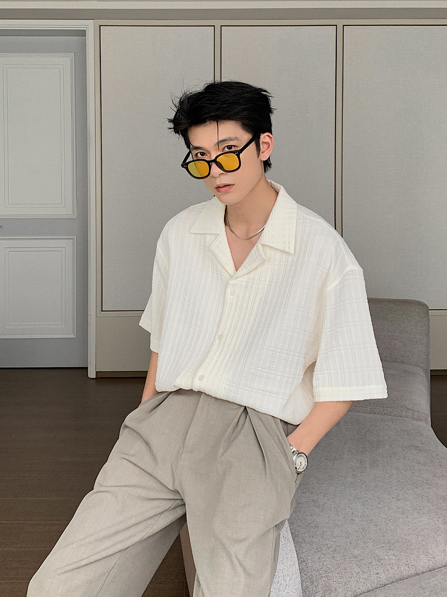 Hualun Men's Cuban Collar Shirt Short-Sleeved Shirt Men's Summer Design Loose Trendy Brand Simple Casual Top