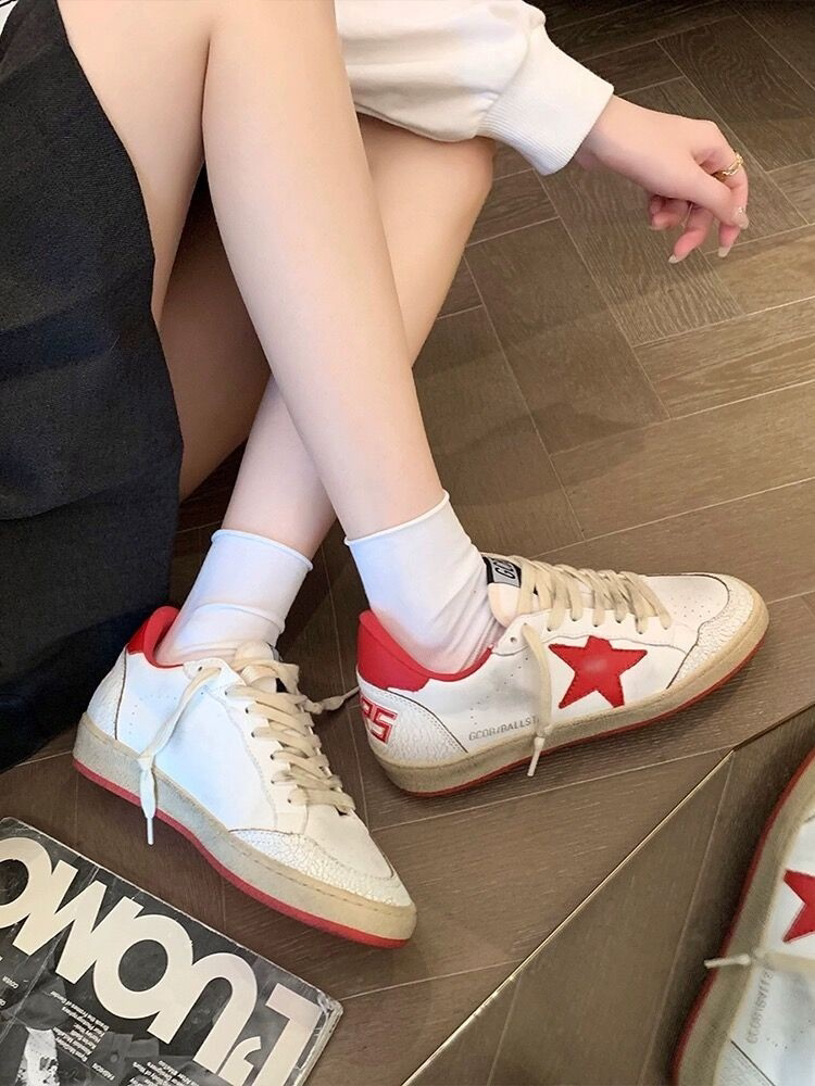 Hong Kong Genuine Leather Versatile Vintage Star Casual Sneakers for Women 2026 Spring and Autumn Soft-Soled Fashionable Sports White Shoes
