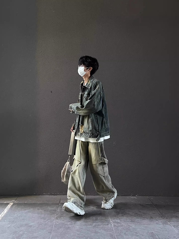 Apocket American-Style Washed Vintage Deconstructed Design Workwear Jacket with Stand Collar, Slim Fit, Short Coat for Women