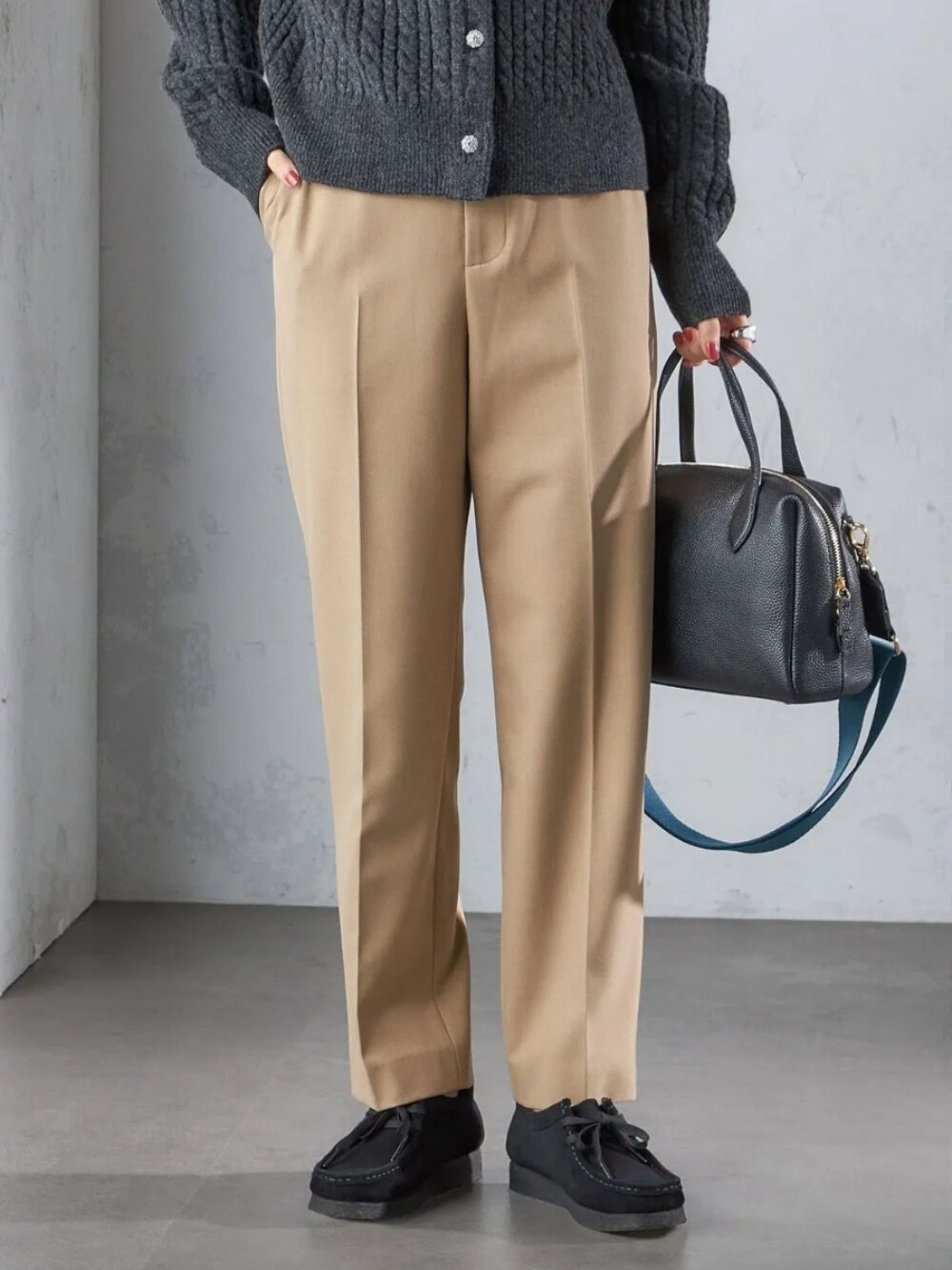 Zoeyja Sh1Ps Warm Brushed Twill Surface, Soft and Elastic, Elastic Waist Tapered Pants
