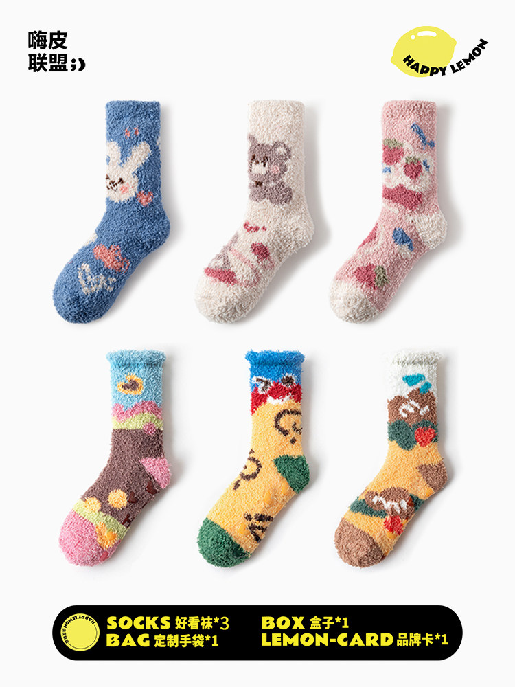 Coral Fleece Thick Socks for Women, Autumn and Winter, Fleece-Lined, Thickened, Home Floor, Postpartum, Plush, Warm, Cute, Sleep Socks