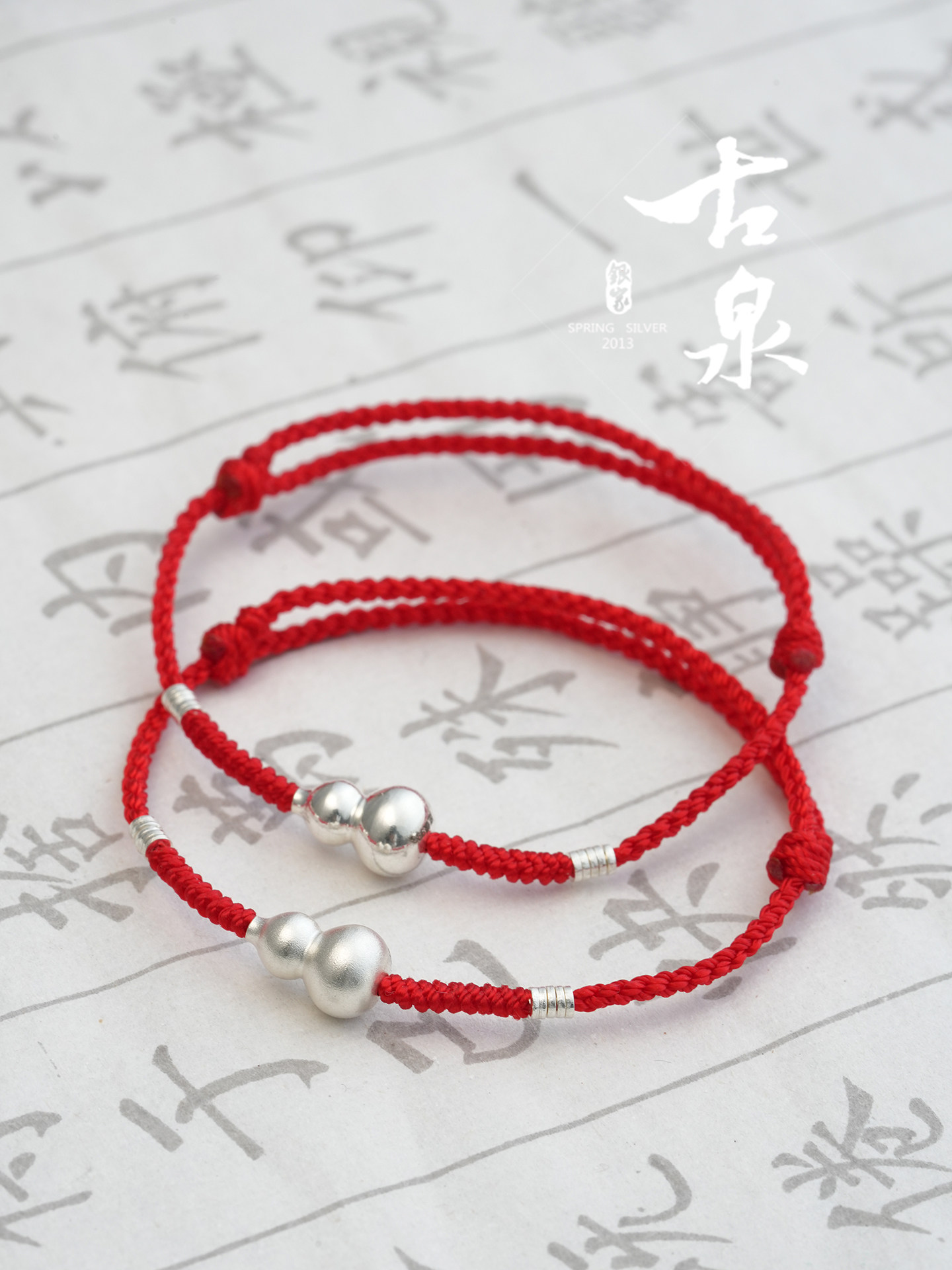 Pure Silver 999 Sterling Silver Gourd Red Rope Bracelet, Simple, Good Luck in the Year of Birth, Fu Lu Double Full Bracelet as a Gift