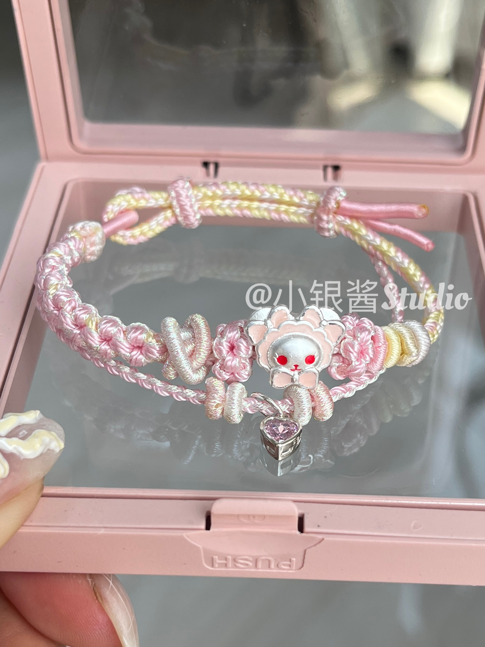999 Pure Silver Rabbit and Bear Accessories, Cute and Sweet Bracelet, Matching Gift for Best Friends, Handmade Braided Rope, Lo Girl Style
