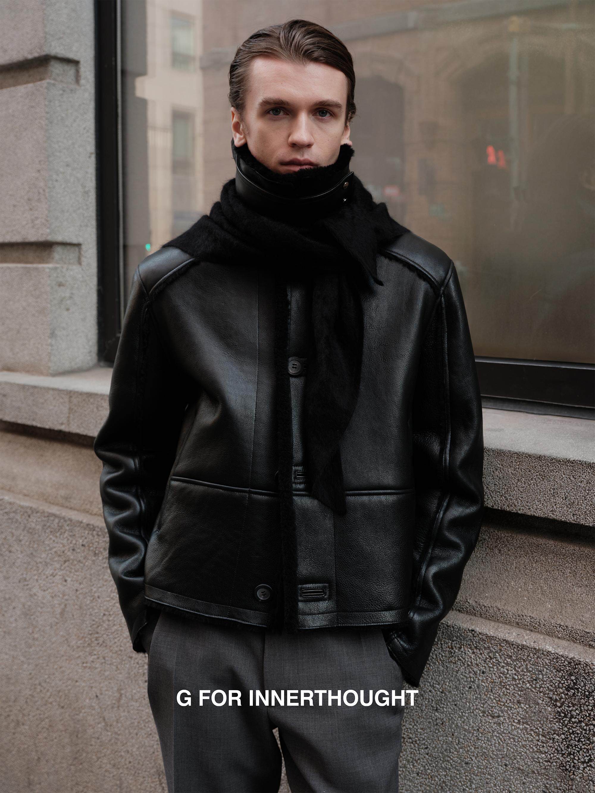 Early Spring Short Wide Hooded Silhouette Leather Jacket for Men, American Retro High-End Loose Biker Soft Leather Jacket Top