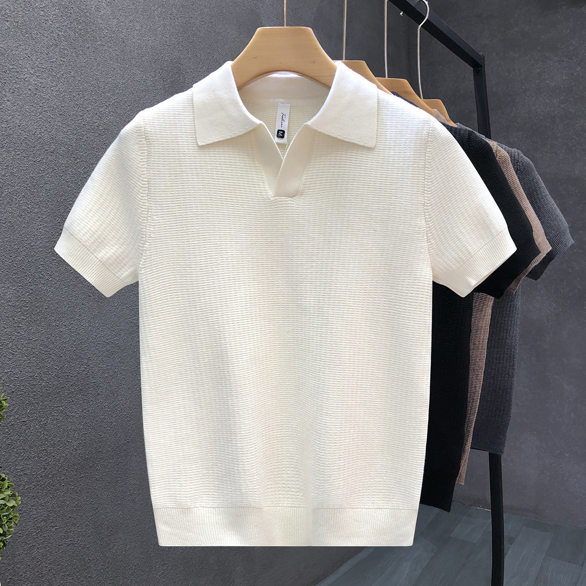 Casual Lapel Korean Style Short-Sleeved Knitwear Men's Trendy Brand Pure Color Knitwear 2025 Autumn and Winter New Men's Tops