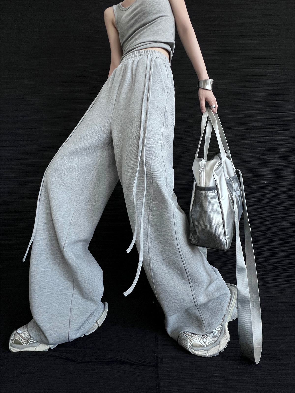 Paperlll Gray High-End Straight-Leg Casual Sports Street Floor-Length Sweatpants for Women 2025 New Autumn Style