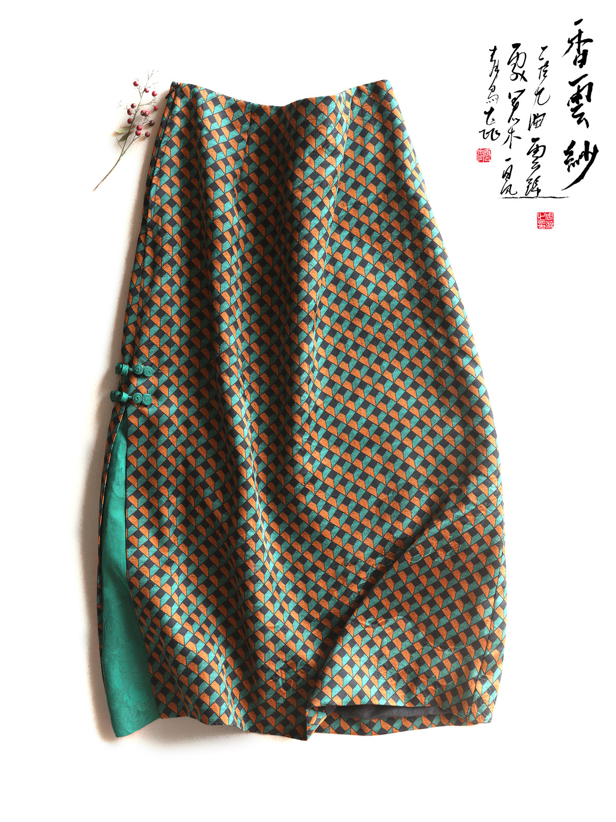 Yunshu Original Floral Silk Cloud Yarn Chinese-Style Improved Commuter Pencil Skirt Mulberry Silk Color-Blocking Printed Bodycon Skirt Artistic