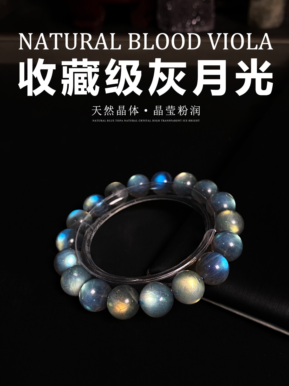 Natural Gray Moonstone Bracelet with Strong Blue Light, Ice Crystal Jewelry, Single Circle Simple Couple Bracelet