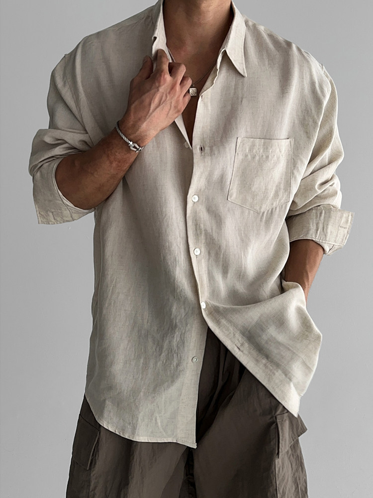 Primas "Old Money Style" Cotton and Linen Shirt for Men, Long-Sleeved Retro British Style Top, Loose and Breathable Shirt