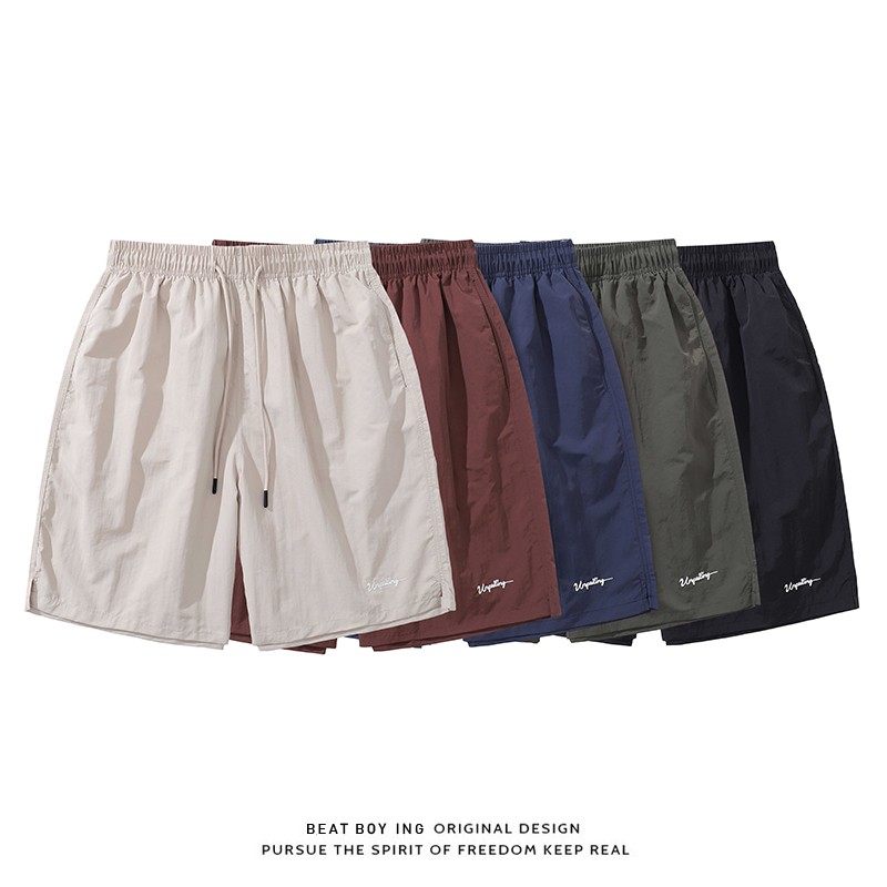 American-Style Summer Lightweight Quick-Drying Solid Color Versatile Basic Loose-Fit Sports Casual Five-Point Beach Shorts for Men and Women